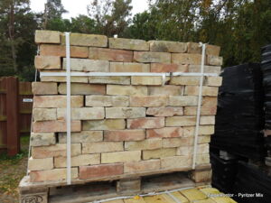 Gelbbunter, Handstrich- Reichsformat-Ziegeln aus dem Rückbau historischer Bausubstanz im Raum Pommern.