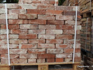 Rotbunter, stranggepresster Reichsformat-Ziegeln aus dem Rückbau historischer Bausubstanz im Raum Stettin/Pommern.