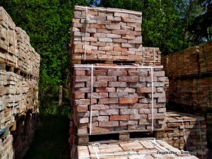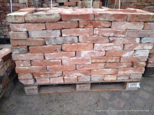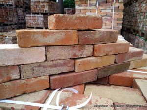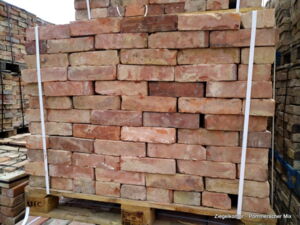 Rotbunter, stranggepresster Reichsformat-Ziegeln aus dem Rückbau historischer Bausubstanz im Raum Breslau.