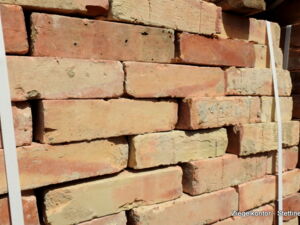 Orangebunter, stranggepresster Reichsformat-Ziegeln aus dem Rückbau historischer Bausubstanz im Raum Pommern.