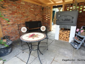 Ein gemütliches Backhäuschen, gemauert mit “Stettiner Bunten”- Reichsformaten, lädt zum Verweilen ein.