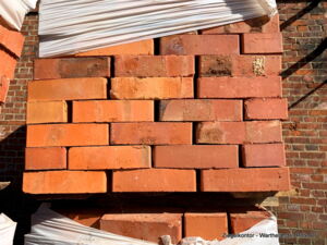 Reichsformat Ziegel aus dem Rückbau historischer Bausubstanz erhalten wir von verschiedenen Lieferanten aus früheren Deutschen Gebieten in Polen wie Schlesien, Pommern und Ostpreussen, manchmal auch aus Zeit und Gebiet der KuK-Donaumonarchie.