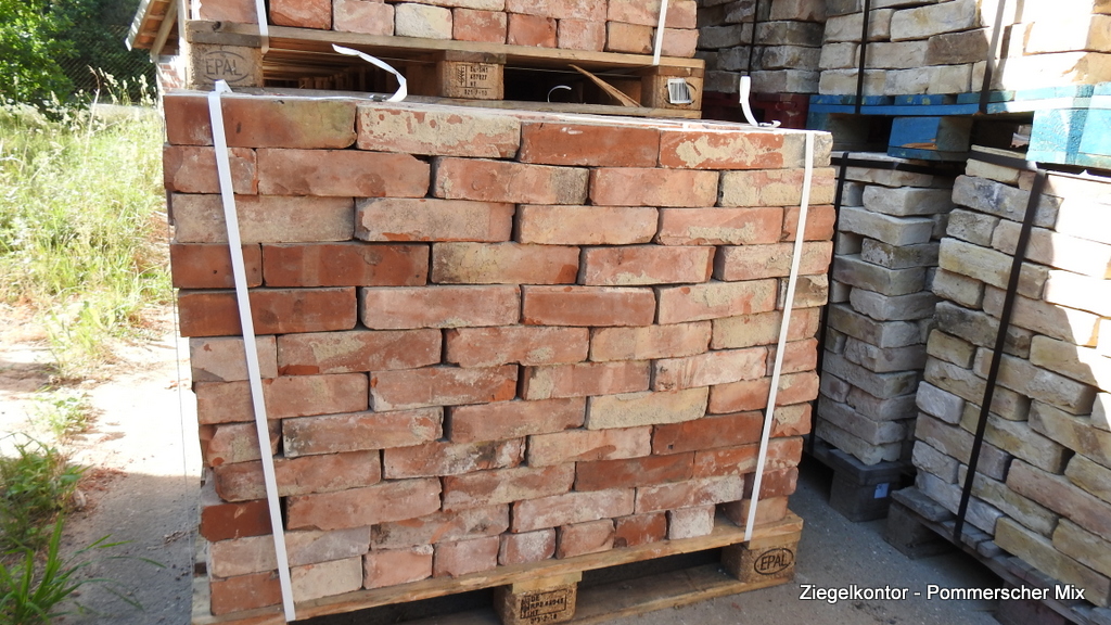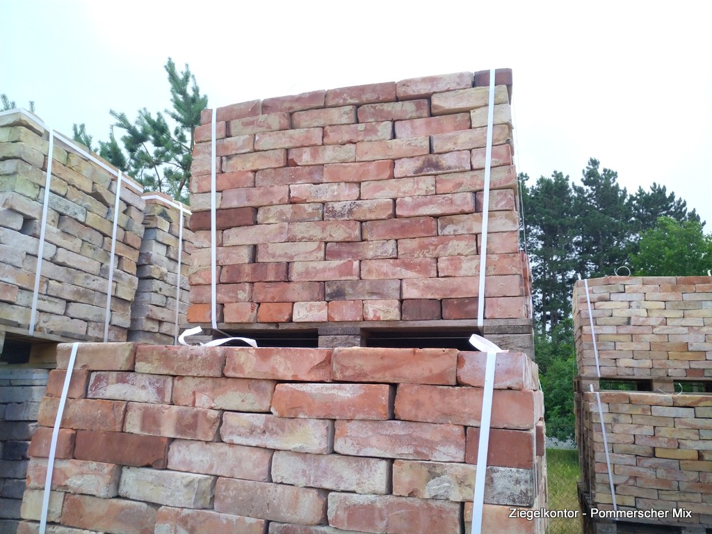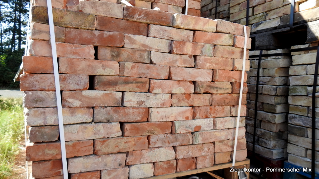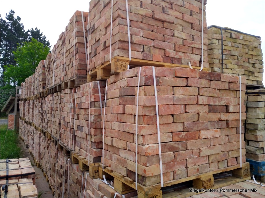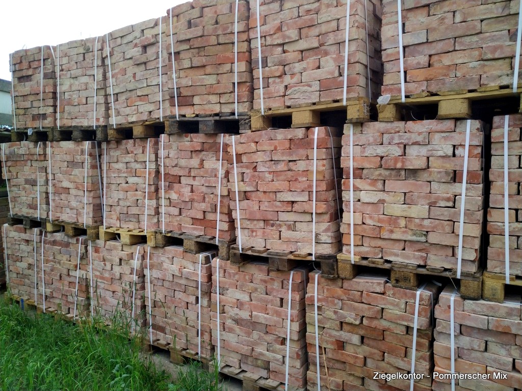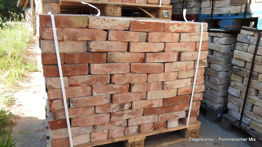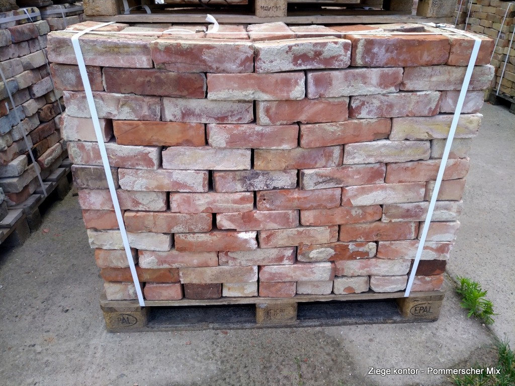 Diese Reichsformate sind ca.100-130 Jahre alt. Die Sortierung umfasst eine Mischung aus handgestrichenen und stranggepressten Reichsfromatziegeln. Die Ziegel wurden seinerzeit mit einem sehr magerem Kalk- bzw. Kalklehmmörtel vermauert.