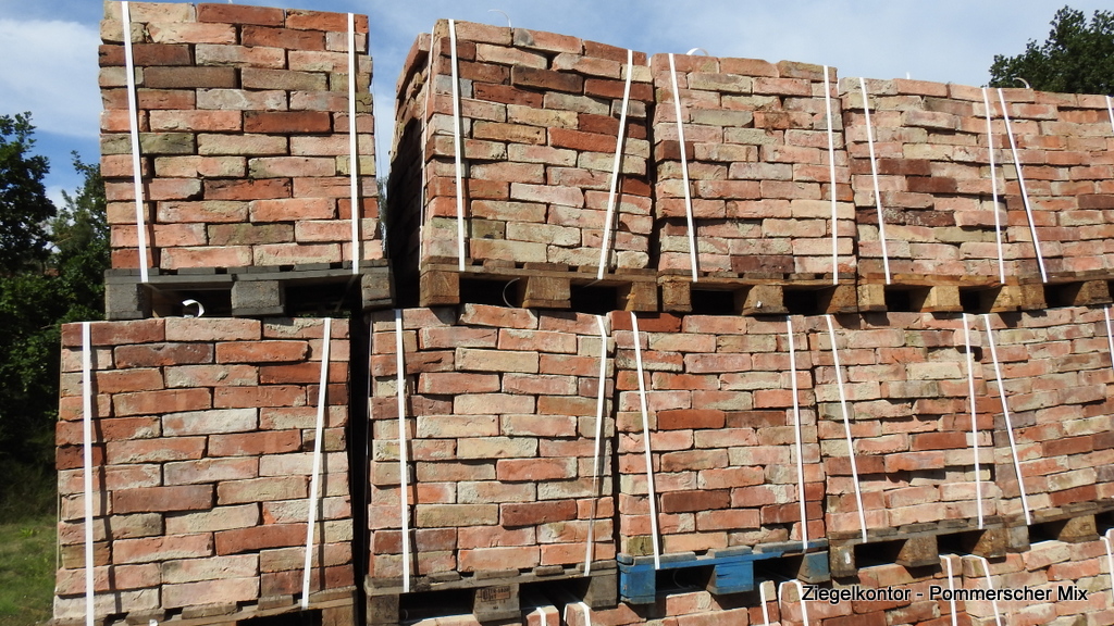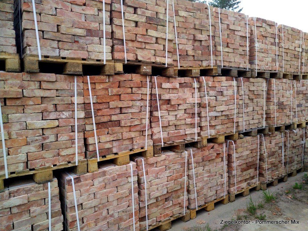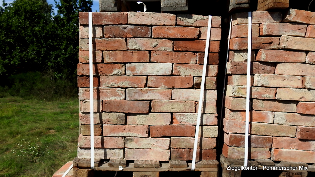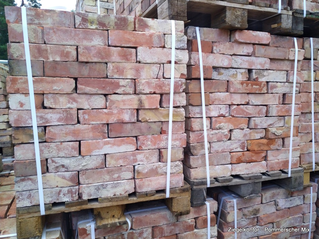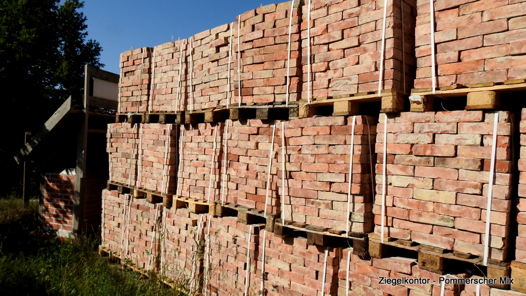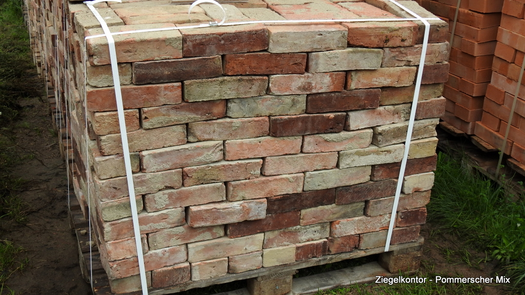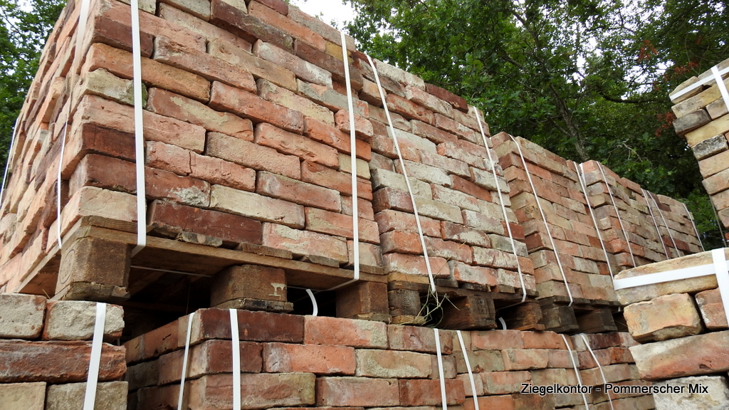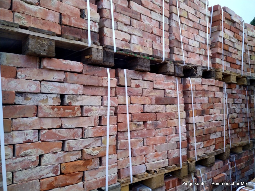 Diese Reichsformate sind ca.100-130 Jahre alt. Die Sortierung umfasst eine Mischung aus handgestrichenen und stranggepressten Reichsfromatziegeln. Die Ziegel wurden seinerzeit mit einem sehr magerem Kalk- bzw. Kalklehmmörtel vermauert.