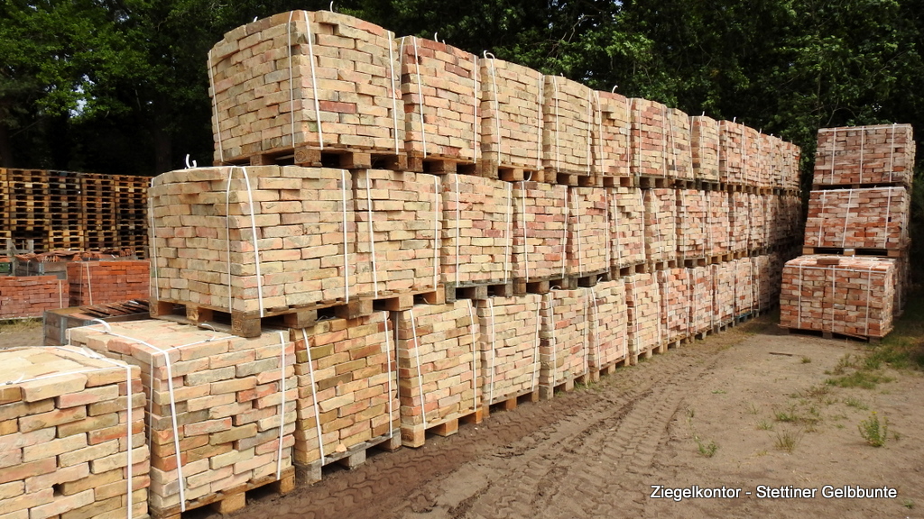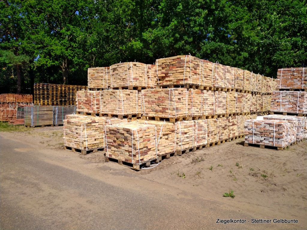 Gelbbunte, strangepresste Reichsformat-Mauerziegel