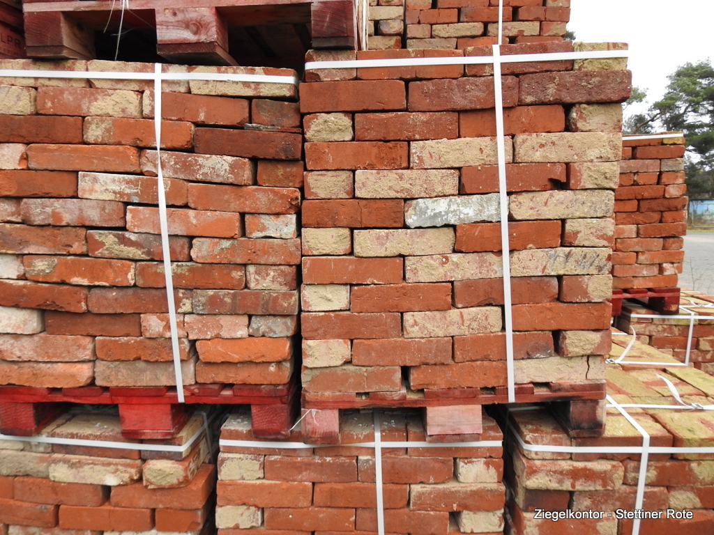 Bei den Stettiner Roten handelt es sich um einen typischer Weise verwendeten stranggepressten, rotbunten Ziegel um 1900.